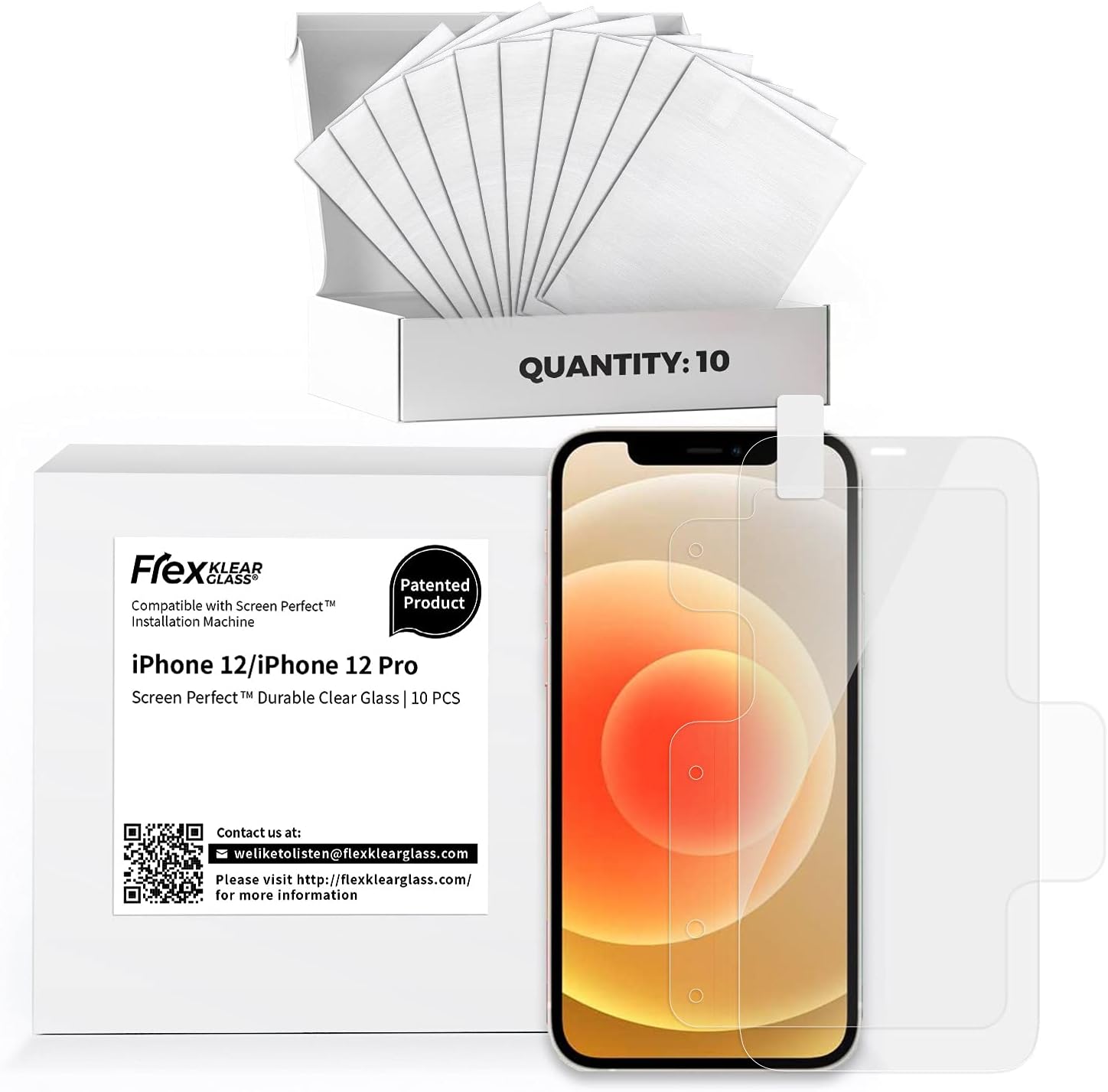 • FLEX KLEAR GLASS 10-Pack of Screen Protectors for the Apple iPhone 12/iPhone 12 Pro (6.1") - For Use with FlexKlear ScreenPerfect Installation Machine ONLY - Durable Japanese Asahi Tempered Glass (10-Pack)