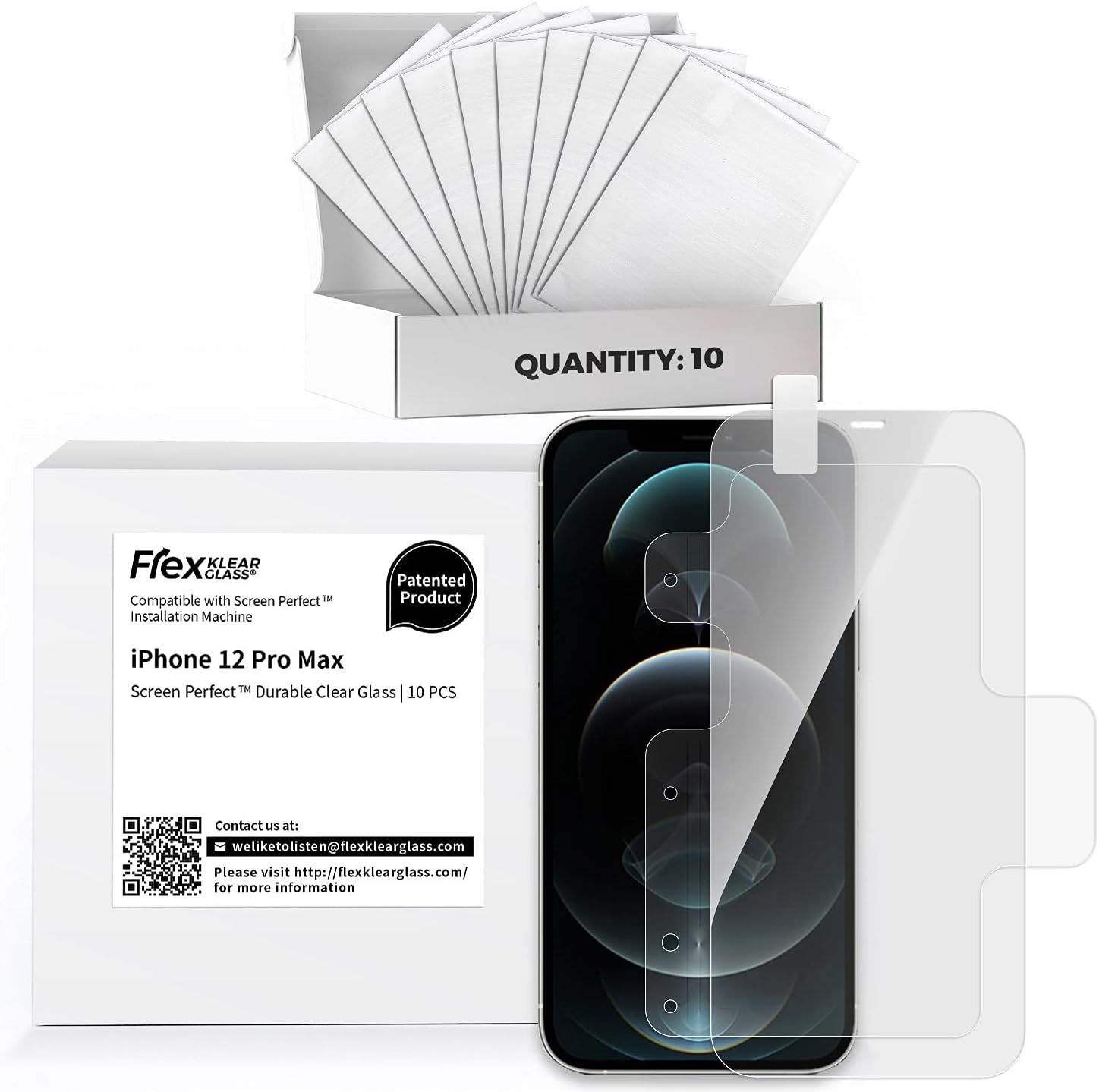 FLEX KLEAR GLASS 10-Pack of Screen Protectors for the Apple iPhone 12 Pro Max (6.7") - For Use with FlexKlear ScreenPerfect Installation Machine ONLY - Durable Japanese Asahi Tempered Glass (10-Pack)