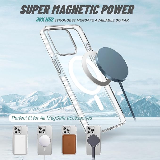 💎【Strongest Megsafe】 The iPhone 15 clear case comes with N52 super magnetic circle array to provide you safety while your phone is attached with MegSafe accessories and fast wireless charging. Attach your iPhone 15, iPhone 15 Pro, iPhone 15 Plus and iPhone Pro Max worry free with charger, wallet, vehicle mounts etc.